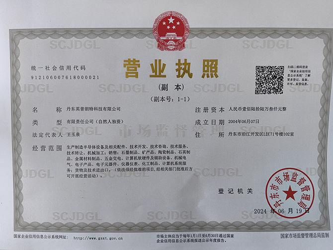 丹東英普朗特科技有限公司始建于1998年10月,2004年6月與澳大利亞合資重建,公司占地面積5300平方米,科研生產(chǎn)建筑面積4300平方米,是IC制造業(yè),半導(dǎo)體裝備的專(zhuān)業(yè)生產(chǎn)廠家,我公司產(chǎn)品并通過(guò)了省級(jí)產(chǎn)品鑒定和科技成果鑒定,被《世界經(jīng)理人周刊》評(píng)為《中國(guó)500******新產(chǎn)品》,暢銷(xiāo)海內(nèi)外。2010年,公司通過(guò)了 ISO 9001:2008國(guó)際質(zhì)量管理體系標(biāo)準(zhǔn)認(rèn)證,并榮獲遼寧省高新技術(shù)企業(yè)和丹東市民營(yíng)科技企業(yè)稱(chēng)號(hào)。